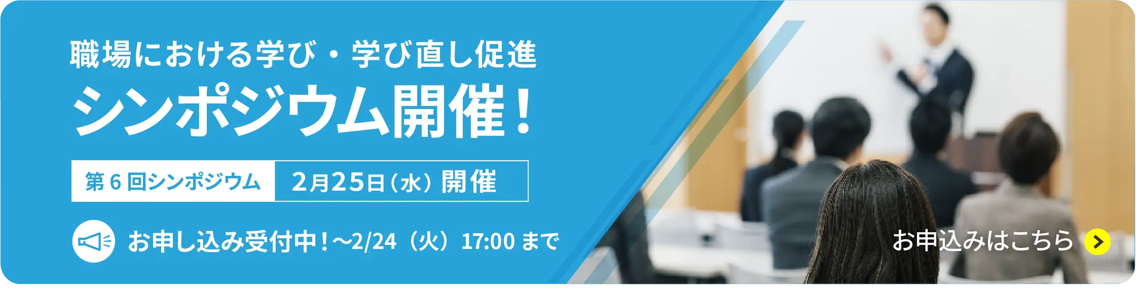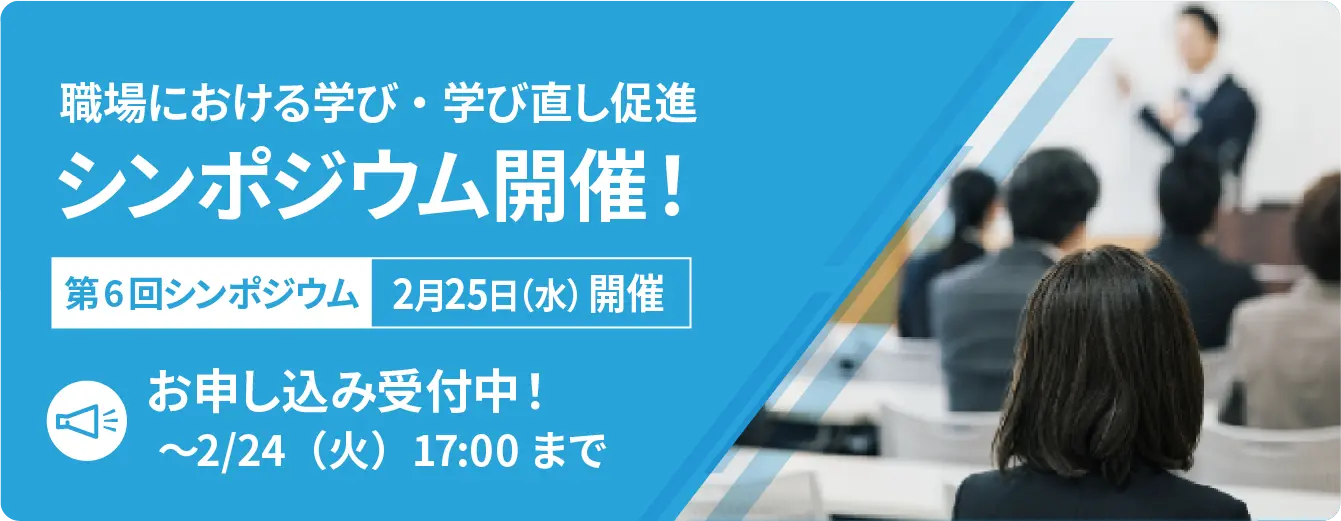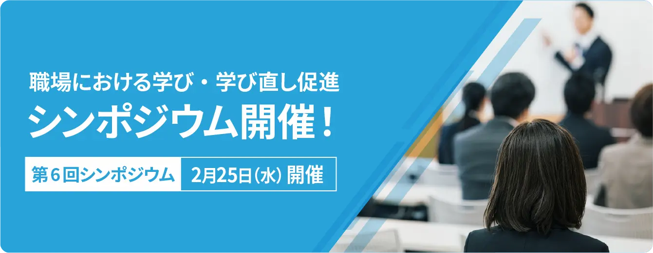 職場における学び・学び直しについて促進していくにあたり、有識者などを招き、職場が抱える課題や取り組むべき事項について理解を深めることを目的としたシンポジウムを順次開催してまいります。