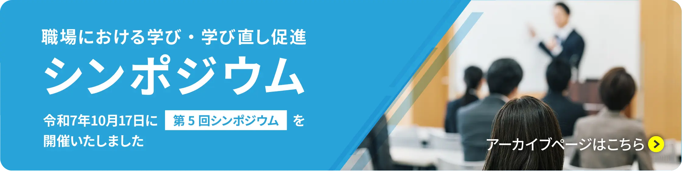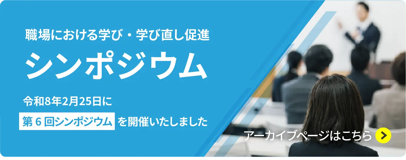 職場における学び・学び直しについて促進していくにあたり、有識者などを招き、職場が抱える課題や取り組むべき事項について理解を深めることを目的としたシンポジウムを順次開催してまいります。